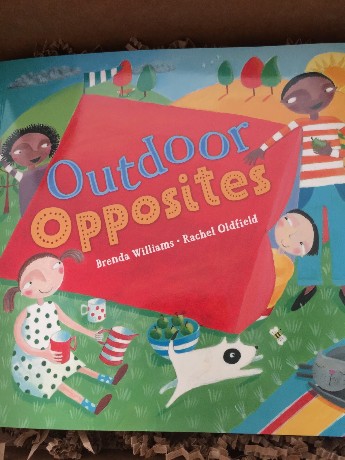 Outdoor Opposites by Barefoot Books. I don't mind getting books in the boxes and this is a new one for us. Its also a soft cover book. $5.99.